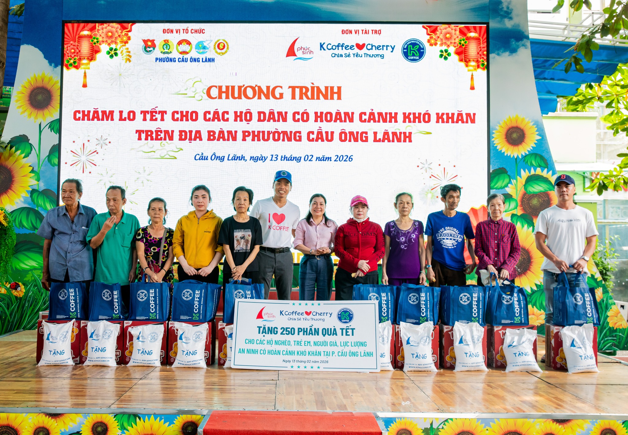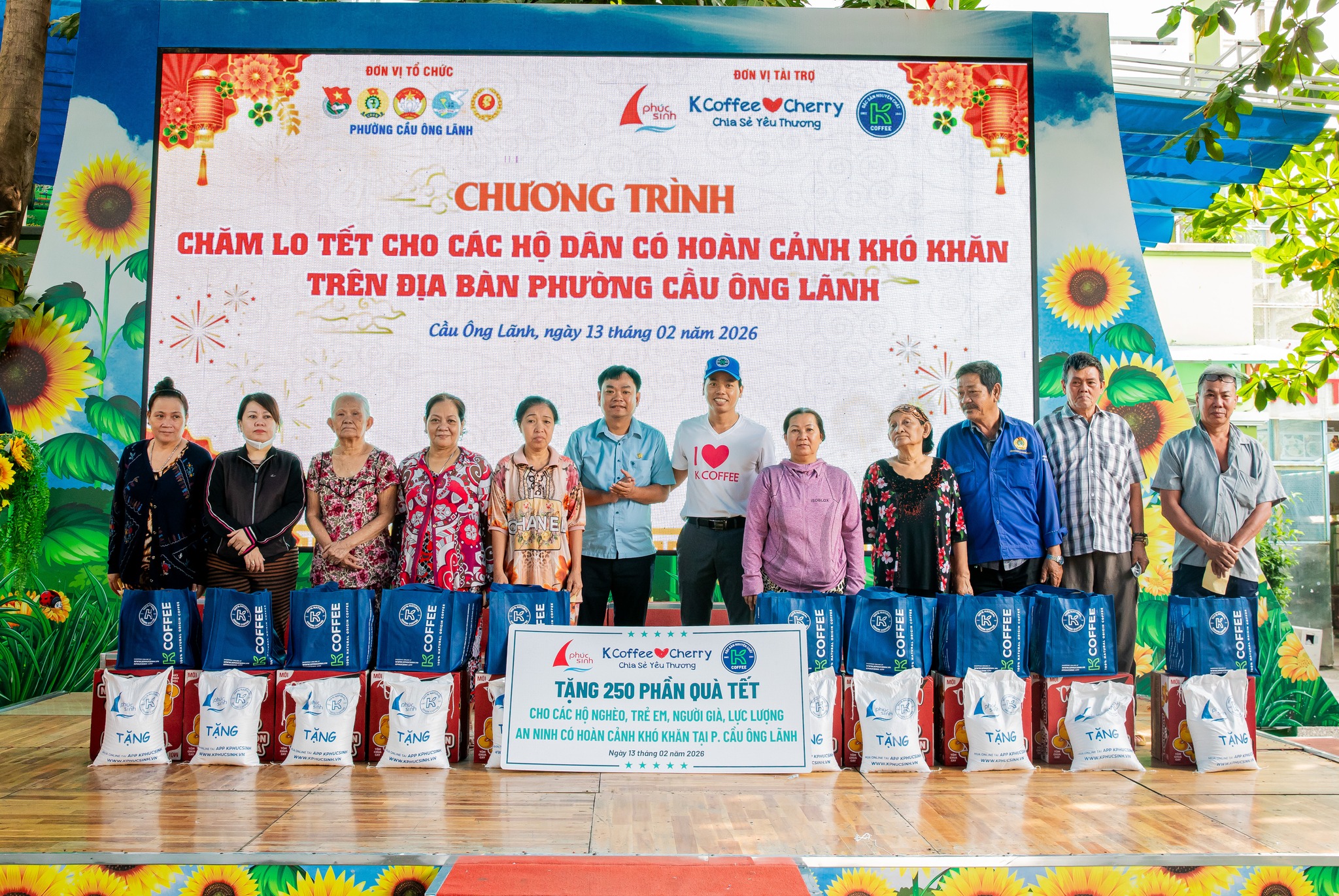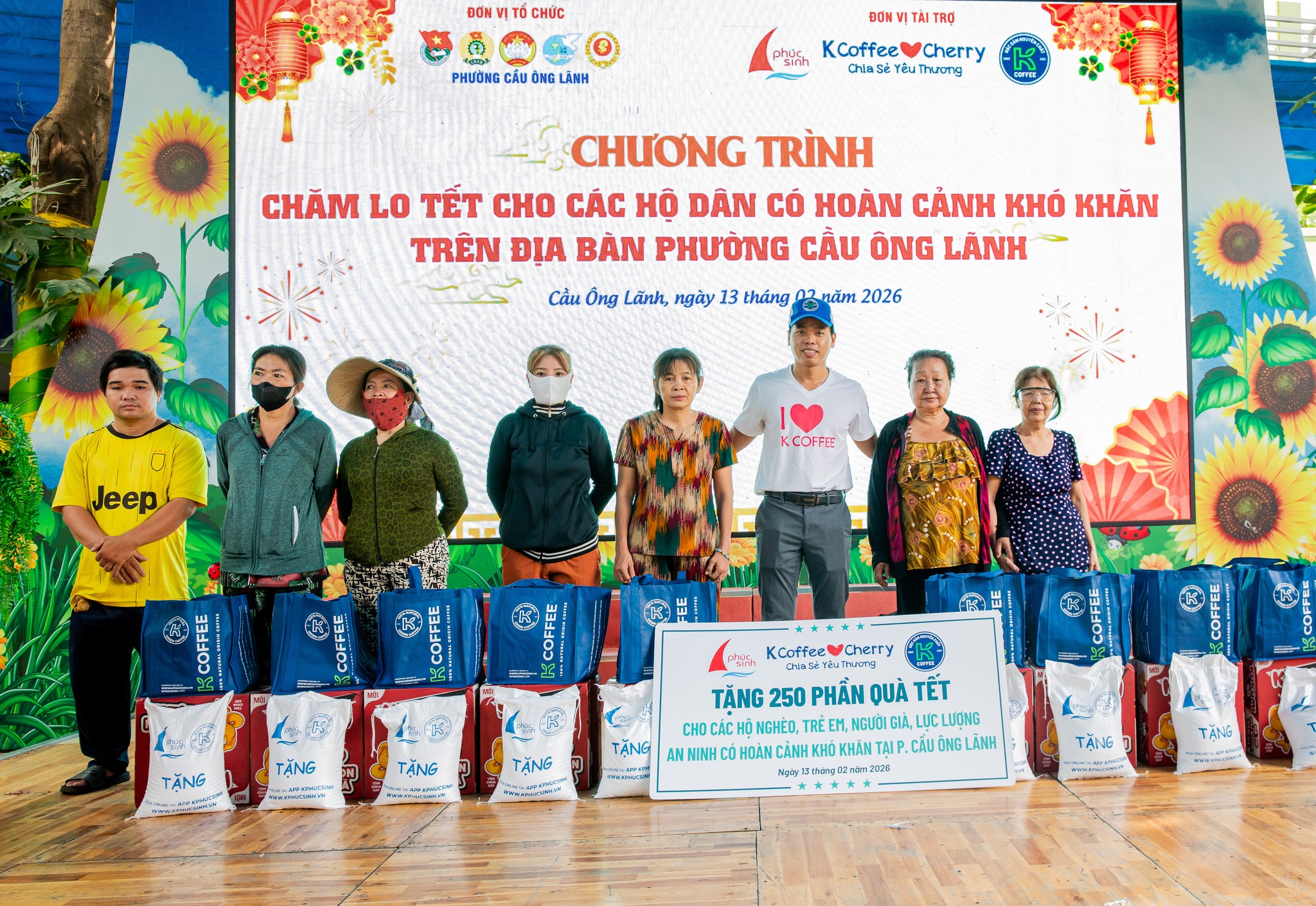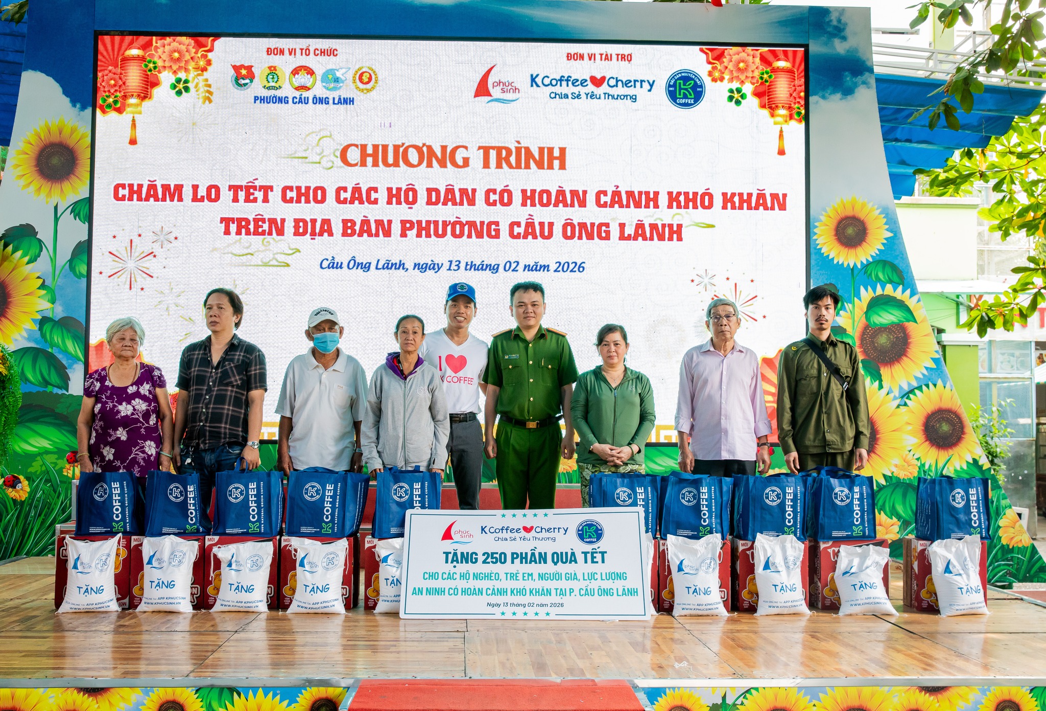 Tiếp nối hành trình lan tỏa yêu thương dịp Tết Nguyên Đán 2026, sáng ngày 13/2/2026, PHUC SINH GROUP và Cherry đã trao tặng 250 phần quà Tết đến các hộ gia đình có hoàn cảnh khó khăn, trẻ em mồ côi, người già neo đơn và lực lượng an ninh tại phường Cầu Ông Lãnh.